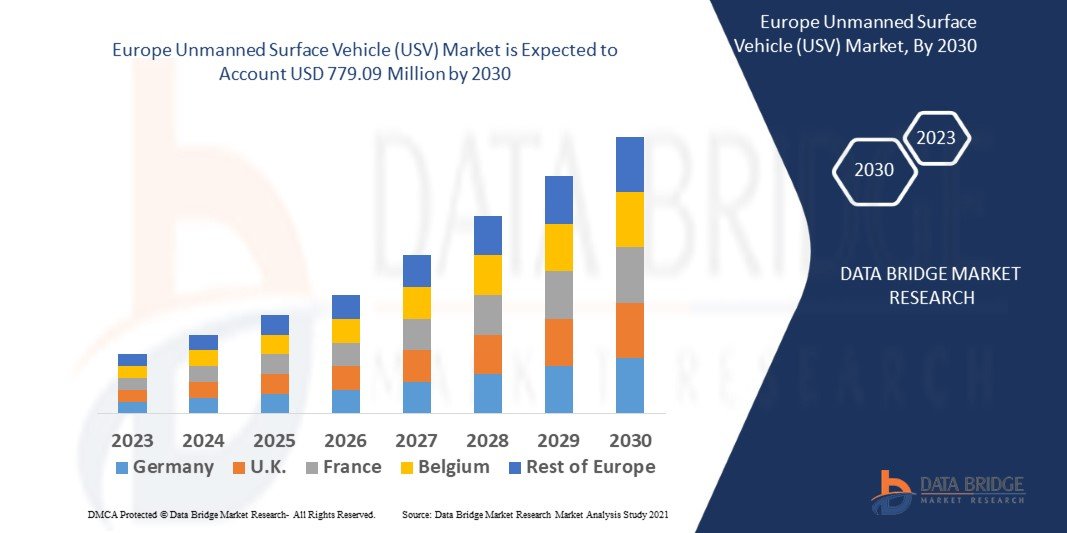 Data Bridge Market Research analyses that Europe unmanned surface vehicle (USV) market is expected to reach the value of USD 779.09 Million by 2030, at a CAGR of 13.2% during the forecast period.