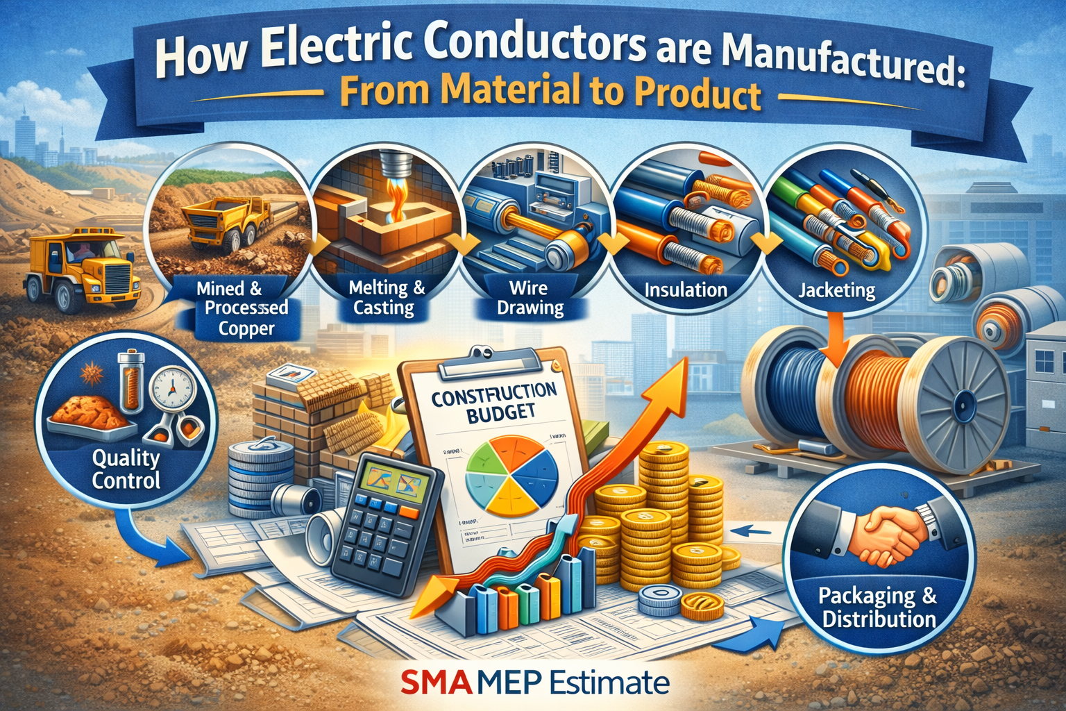 In the electrical industry, knowledge of how conductors are manufactured is important. These important parts provide energy to homes, industries, and cities through the effective distribution of electricity. Since demand for these conductors has risen high, manufacturing electric conductors are now well-organized. In its turn, it all begins with the choice of materials and ends with the creation of the final product meeting all wants. This blog focuses on the life and production process of a conductor. We will also review how material and electrical estimating services boost the reliability and efficiency of this process. We also endorse the services provided by SMA MEP Estimate. It offers qualified estimators with extensive experience and the best software.